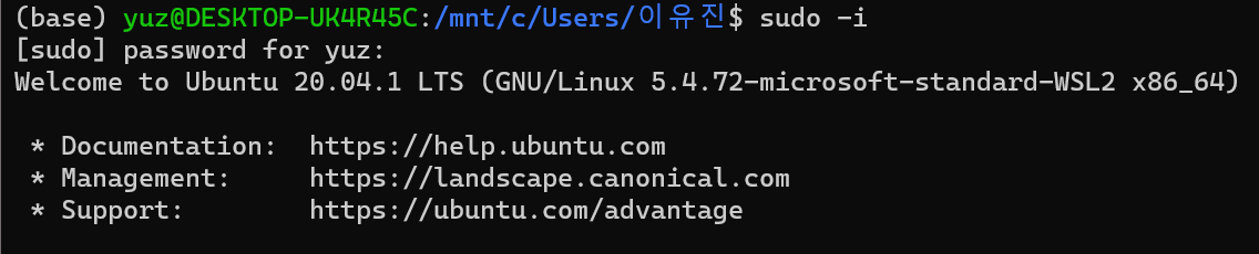 먼저 우분투에 관리자 계정으로 들어가준 뒤, (sudo -i 명령어)