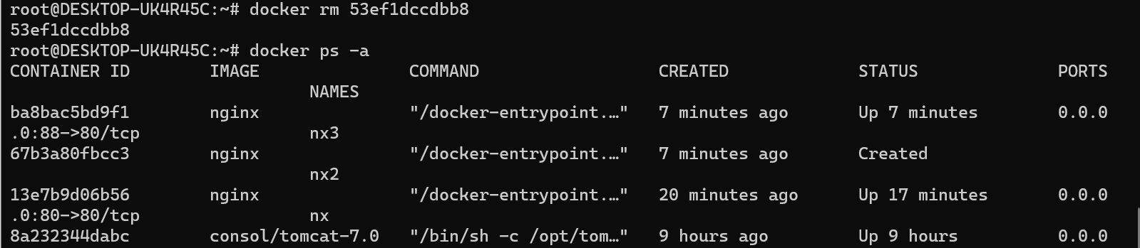 - 컨테이너 삭제하기 (1. 실행중이지 않은 (created상태인) 컨테이너,