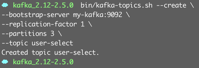 싱글 브로커로 구성된 카프카 클러스터를 사용하므로 최대 복제 가능 개수 값인 1로 설정.